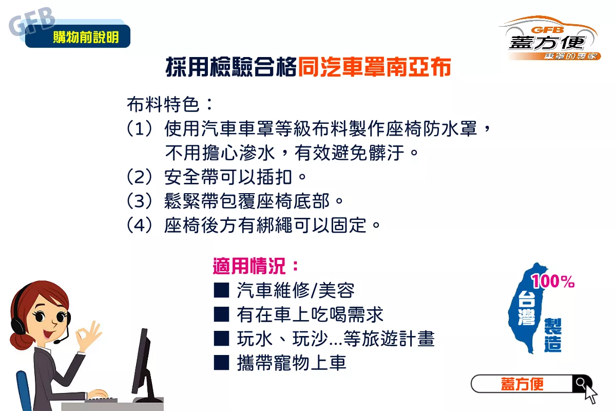 【蓋方便】台灣製造汽車座椅防水防污罩 適用汽車美容/個人清潔/避免幼童溢奶嘔吐/汽車維修/寵物同行